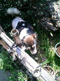 白黒犬 モモ 庭 110329_134226