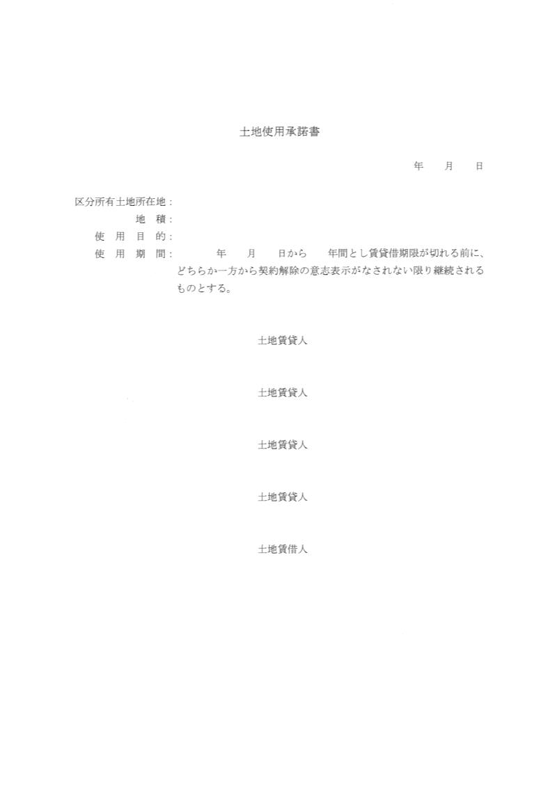 土地使用承諾書 雛形(テンプレート) 不動産関連 CCF20110917_00000