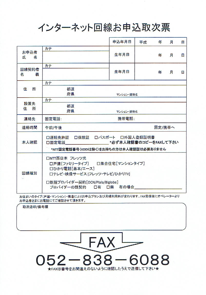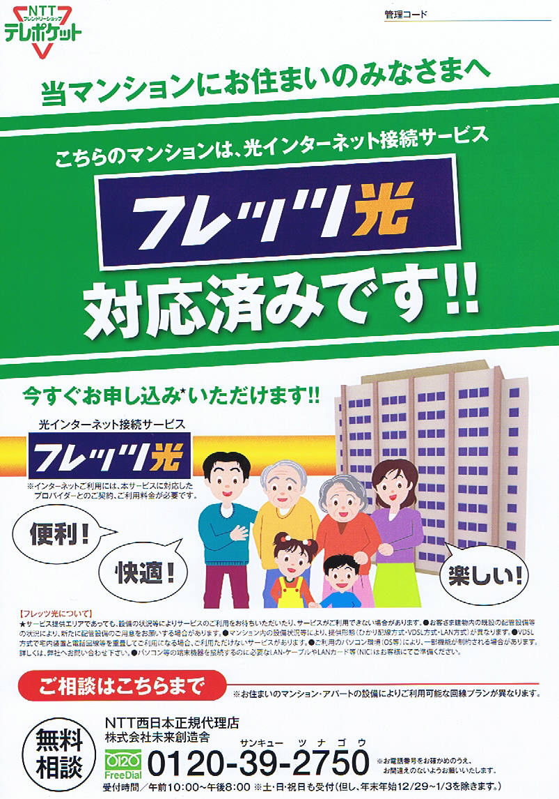 フレッツ光 問合せ先 光回線インターネット接続 未来創造舎 CCF20111004_00000