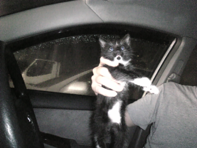 黒白子猫 サブ 車の中 持ち上げている Image100
