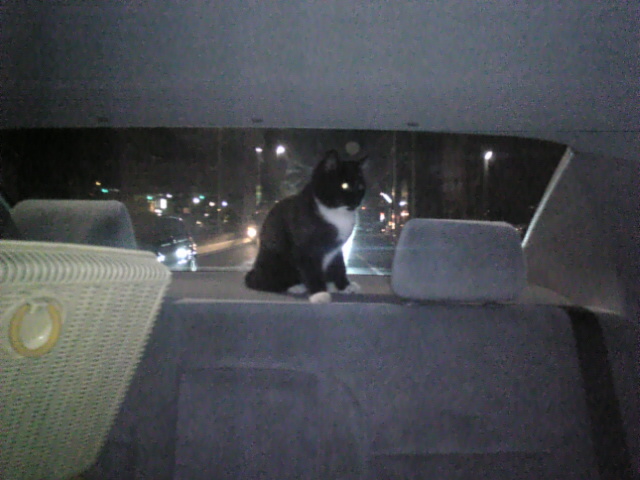 黒白猫 サブ 車の後部 目が光っている Image181